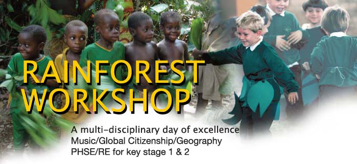The workshop sessions have children and teachers actively participating with confidence. Through learning about the life of the Baka they develope their own skills whilst gaining an understanding of the diversity of cultures. |